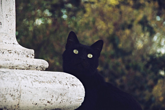 - This is a striking capture; the contrast of this black cat against the bleached pillar and the soft muted backdrop, along with its bright eyes, allows this cat to stand out. Beautifully captured and managed in post. ~ illona
