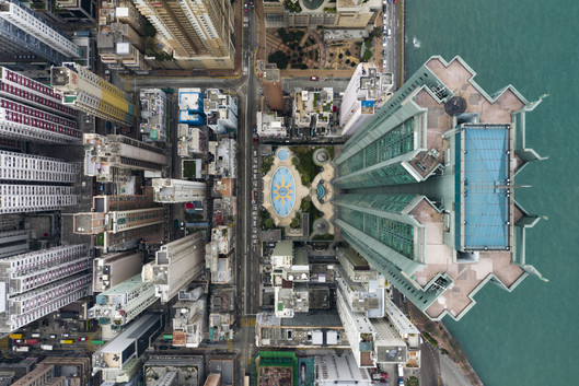 - I guess this is Hong Kong, it is a clever drone shot, making nice shapes out of this very jumbled city… How cramped it looks from above !