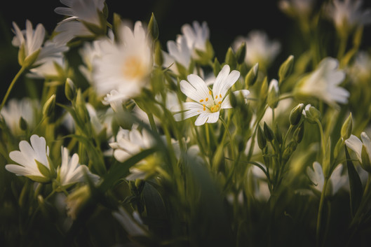 - Sometimes the photographer has to bend down a little, or maybe even go all the way down to create a different angle. How this photo was taken makes us feel, being integrated with these little flowers, being right there with them.