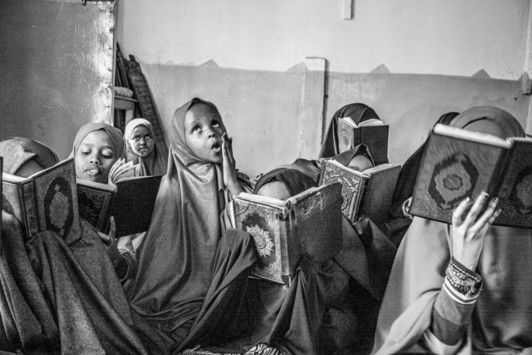 - Whilst the other children reads the words of God in the Koran, one takes the direct route to peek up to the supreme being. Besides this, it’s an interesting photograph of a scene few of us would get to experience.