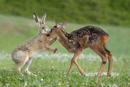 - So cute. I guess one, or both of these have grown up in a human environment…(?) But what a lovely cross species meeting.