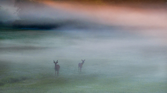 - This was taken in my front yard. Every morning when I wake up, I look out of my window to see what the morning is like. I see deer a lot, but this time everything came together with the sunrise, fog and deer. The buck was a big plus!