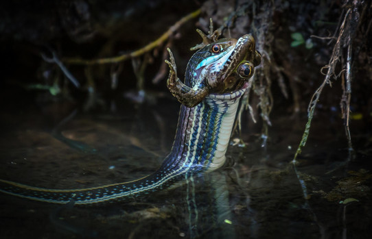 - You have caught a rare shot, a frog’s last moments on the outside of this water snake. But you have also managed the light so well, adding to the horror the frog is experiencing, fingers outstretched…