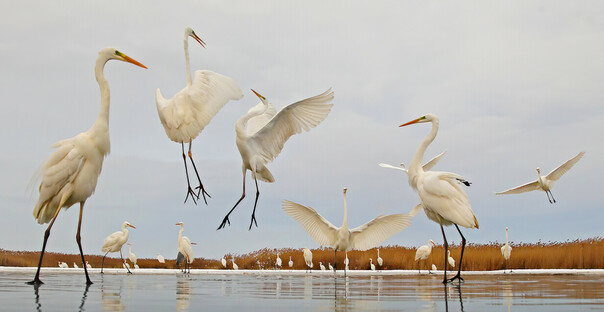- An interesting collection of egret poses shot from a low viewpoint hide.