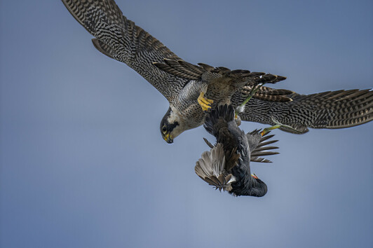 - Angie Birmingham, I took this photo while on a trip with Promediagear and the other guests. We went out on a airboat ride and the peregrine falcon came out of nowhere and snatched this Common Gallinule that just took flight. Sony A1 and 600mm f4 lens