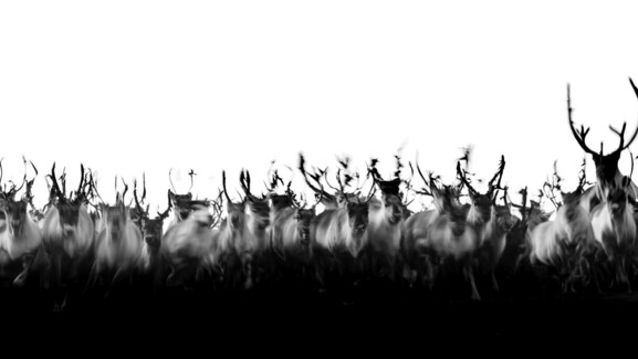 - The image is taken in Northern Norway. The Sami people gather their reindeers in corrals where they pick out the animals that are going to the slaughterhouse, and they mark the calves. All the Sami reindeer herders have their own unique earmark for their reindeer. The image is taken with a Nikon D750 with a 70-200 mm lens, and converted to black and white.