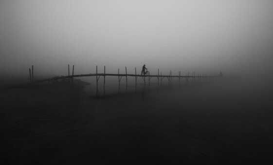 - A temporary bamboo bridge that is constructed upon the river Kongsabati or Kasai at Jhargram in West Bengal,India. In an early foggy winter morning I went there to get some frame. The I saw the scene. Actually, people of these areas are mostly farmers and in early morning they carry fresh vegetables to sell in the market. So they have tp cross the river. During rainy time they cross the river by boat as the water level has been increased. But other time, people construct this temporary bridge. I use Nikon d7000 with kit lense Nikon 18-105,a sigma 18-55 f2.8 and a Nikon wide angle 10-24. Nothing did with the frame, just convert it into black and white by using Nik filter in photoshop.