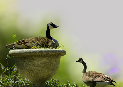 - Thanks for the Honor! I was strolling with my wife down the river walk. Many, Many geese there. All in breeding season. This one decided to use a flower pot, that hasn't had it blooms up yet, to lay her eggs. Nothing was going to disturb her.