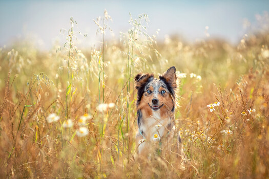 - Thank you so much, I'm very happy. Everything was just right here: Wilma, a Miniature Australian Shepherd, whose color harmonizes so beautifully with the surroundings and a very atmospheric evening light, just before a heavy rain shower...